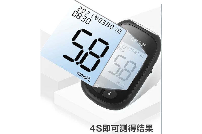 艾科•乐舒血糖仪搭配极细采血针,只需要0.4微升血样量,采血过程仿若无痛,并且倒计时3秒,即可出结果,反应速度更快。