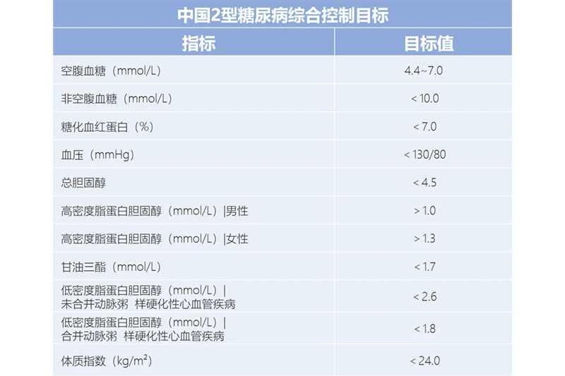 循证医学证据表明,预防糖尿病并发症应综合性管理糖尿病,包括降血糖、降血压、调节血脂、抗血小板、控制体重和改善生活方式等治疗措施。型糖尿病患者理想的综合控制目标会因年龄、合并症、并发症情况的不同而不同。