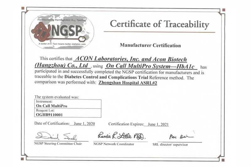 6月1日艾科糖化血红蛋白检测产品又一次通过了NGSP认证,相继2018年、2019年,艾科糖化血红蛋白检测产品已是第三次通过NGSP的严格审核。