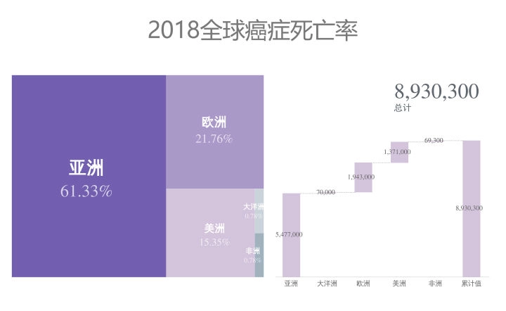 新增的1810万癌症患者中,亚洲占48.40%;而死亡的960万癌症患者中,亚洲则占了57.30%。