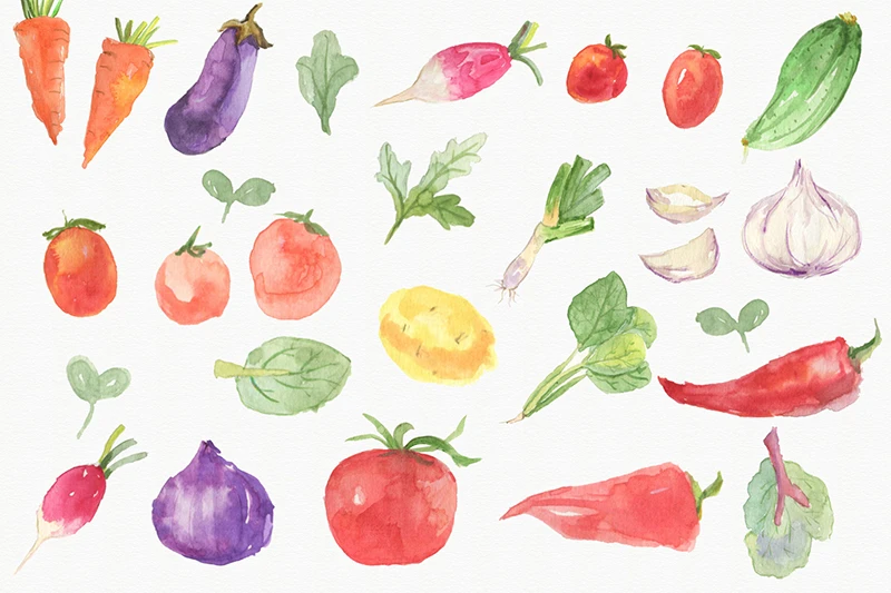 蔬菜类:包菜、胡萝卜、芹菜、黄瓜、甘蓝、莴苣、南瓜、番茄、萝卜、土豆、山芋等