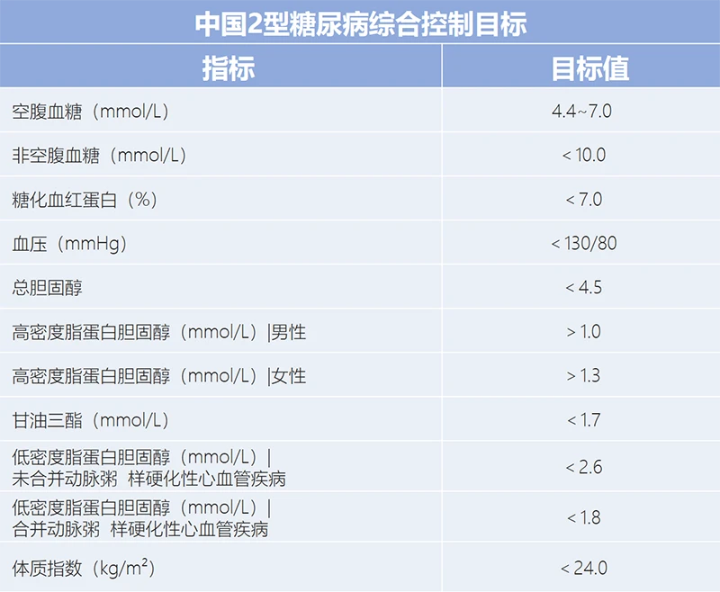 循证医学证据表明,预防糖尿病并发症应综合性管理糖尿病,包括降血糖、降血压、调节血脂、抗血小板、控制体重和改善生活方式等治疗措施。12型糖尿病患者理想的综合控制目标会因年龄、合并症、并发症情况的不同而不同。