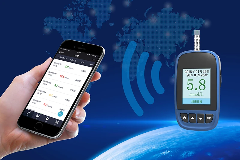 糖尿病患者应该学会记录血糖监测数据,然后去总结规律,了解自身不同情况下血糖变化的趋势。如果您自己不会分析血糖数据,可以选择具有数据传输及分析功能的血糖仪,如可以连接微信的血糖仪。它可以根据血糖仪监测结果,自动上传数据至微信后台,生成血糖日志及趋势图表,让您的长短期血糖变化趋势及血糖异常数据可以一目了然,更方便自己、家人和医生随时查阅。