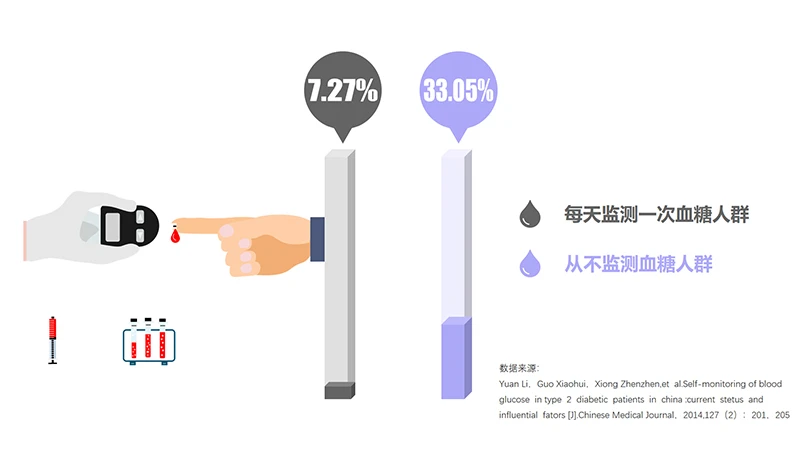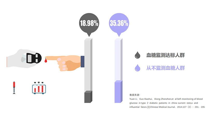一项纳入5953名糖尿病的多中心、横断面研究发现,仅有18.98%的糖尿病患者达到指南推荐的血糖监测标准,其中35.36%的糖尿病患者从来不做自我血糖监测。