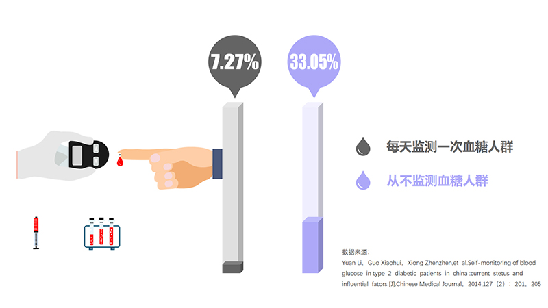 殊不知,只有将糖尿病患者的血糖控制在目标范围内,才能有效降低其视网膜、肾脏、神经系统及大血管并发症的发生,降低死亡率及医疗费用。为了控制患者的血糖,必须对患者血糖进行监测。然而,目前我国糖尿病患者的自我血糖监测频率和达标率远没有达到指南要求。