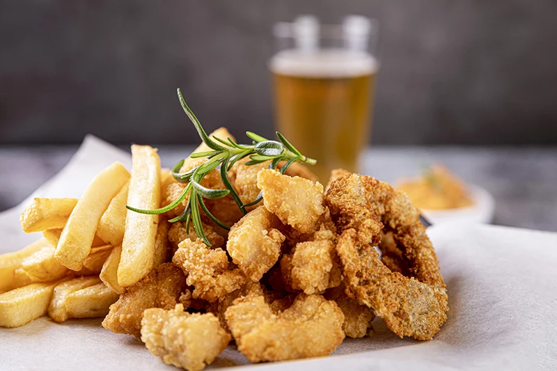 油炸食品,如炸面包、炸鸡腿、炸油条、炸薯条、油饼、炸鸡排等,都应避免食用。