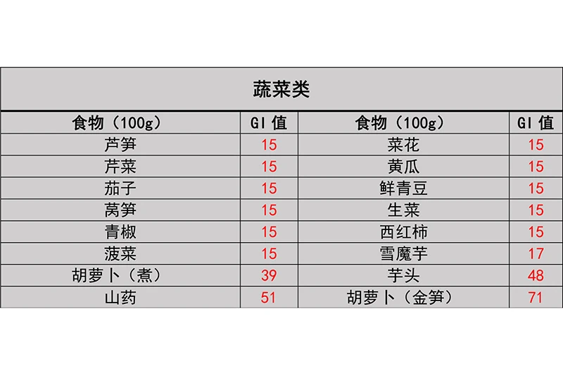 GI≤55,低GI的食物,蔬菜豆类为主。