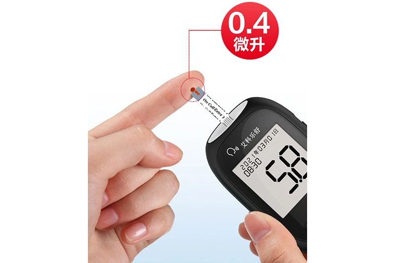 艾科•乐舒血糖仪搭配极细采血针,只需要0.4微升血样量,采血过程仿若无痛,并且倒计时3秒,即可出结果,反应速度更快。