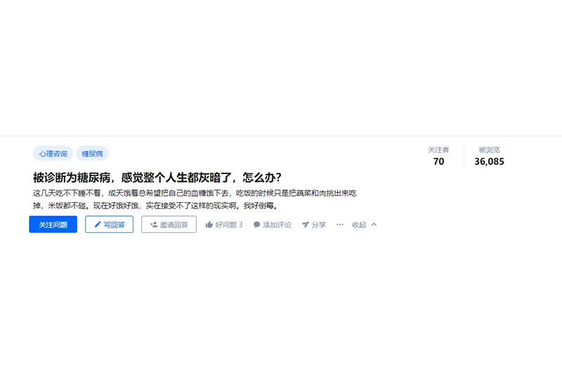 题主刚刚确诊糖尿病时,和很多糖友心态一模一样,被糖尿病无法治愈的定论深深击垮,顿时感到丧失希望,开始茶饭不思,夜不能寐。