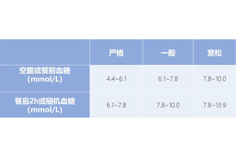 糖尿病患者的血糖控制目标因人而异。对于年轻人群采取严格血糖控制目标,对于预期寿命短、老年人等采取宽松的血糖控制目标,其他人群采取一般血糖控制目标。您适合哪种血糖控制目标需要与医生商议。