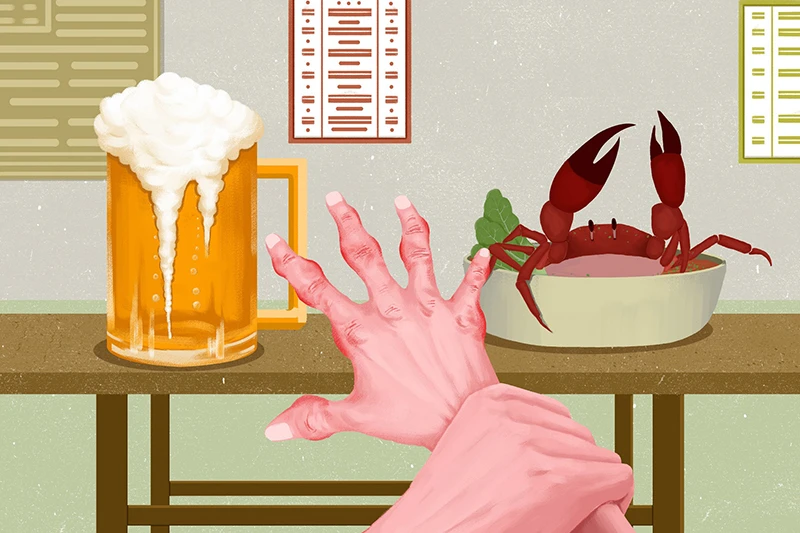 酒精代谢产生的乳酸会影响尿酸的排泄,另外酒精还会促进嘌呤分解从而直接升高血尿酸。有研究发现,酒精摄入量≥50克/天时,其痛风发病风险比不饮酒者高 153%,不管是啤酒、白酒还是红酒,对于痛风患者来说,还是少碰为妙。