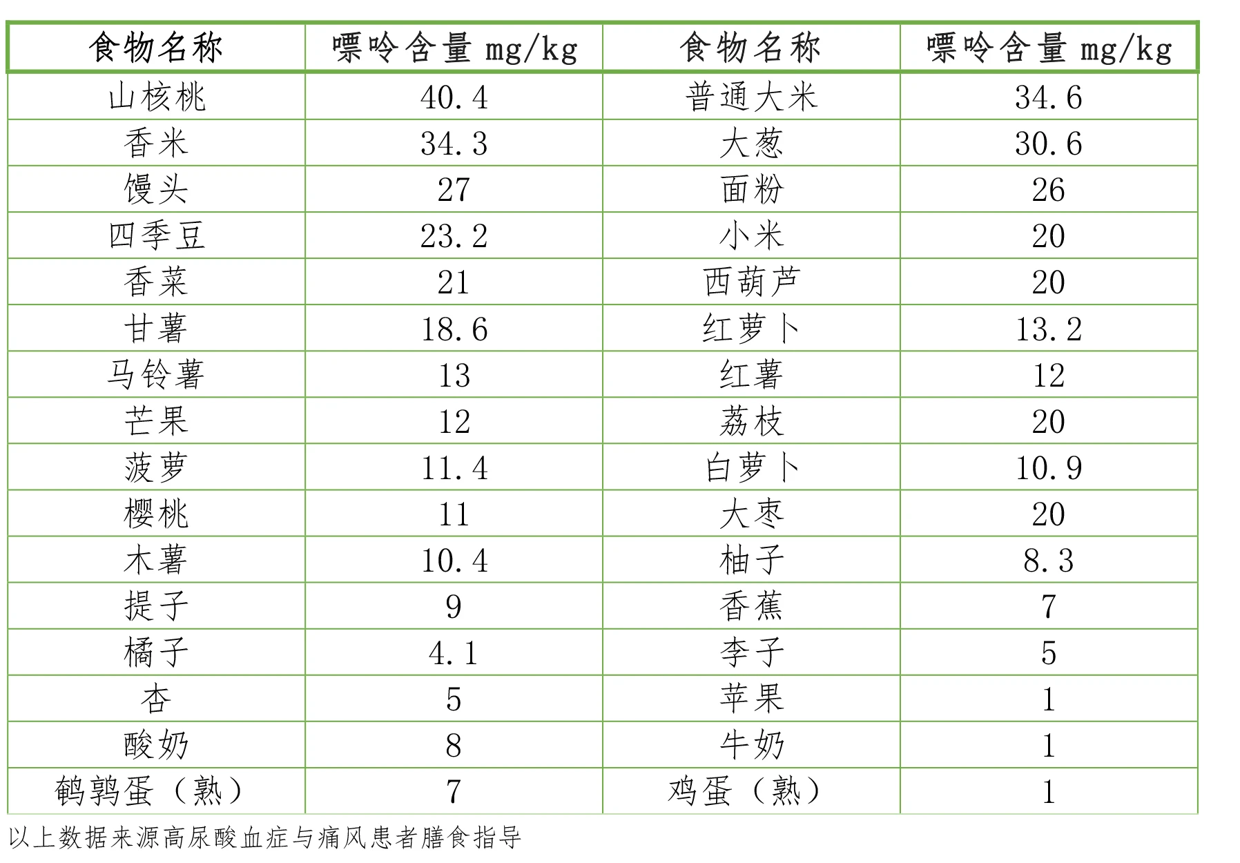 控制饮食是高尿酸血症和痛风治疗中的重要一环,了解食物中的嘌呤含量,选择适当饮食摄入,同时注意充分饮水,增加排尿量从而促进肾脏排泄尿酸,减少尿酸盐结晶沉淀。