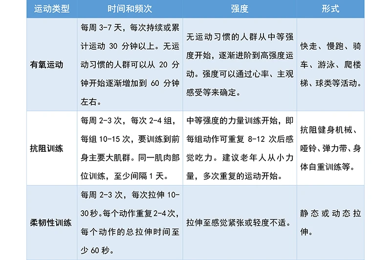 ①减少静坐时间,增加日常活动:连续静坐时间不超过60分钟。增加日常活动和结构化的锻炼,运动方案应该包含有氧运动、抗阻运动和柔韧性训练。