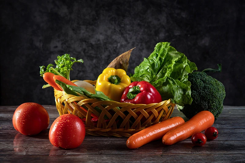 不同种类、颜色的蔬菜营养特点不同,每日食用的蔬菜要多样,深色蔬菜占1/2以上。
