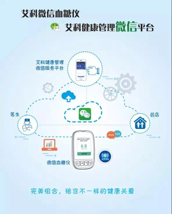 艾科微信血糖仪可配合艾科健康管理的微信服务平台,轻松上传数据,自动生成血糖报告,即时了解血糖变化情况,拥有属于自己的健康管家,可实现一对一在线交流和健康咨询。血糖监测采用先进技术的微量采血,更有动画指导,生动形象。微客服在线解答,保障您的售后服务。