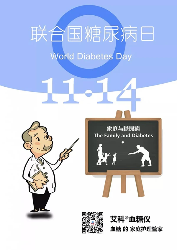 2018年联合国糖尿病主题为家庭与糖尿病(The Family and Diabetes)。关注家庭对糖尿病的宣传教育、防治和监测,提高对糖尿病的认识,更加关心糖尿病患者的工作与生活,加强对糖尿病预防措施、治疗手段的研究。让更多的家庭了解糖尿病的危害,改善生活中的不良行为,提高自身和家人的预防意识,控制和延缓糖尿病的发生。