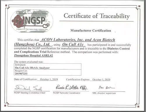 艾科糖化血红蛋白检测产品再次获得NGSP认证证书!