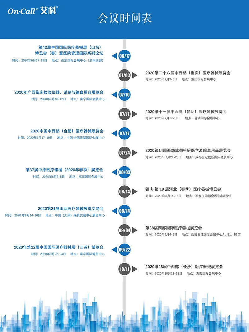 因受到新冠疫情影响,上半年延期的展会,目前部分已经确定下来,来看一下艾科2020年省级医疗器械会议时间安排表!