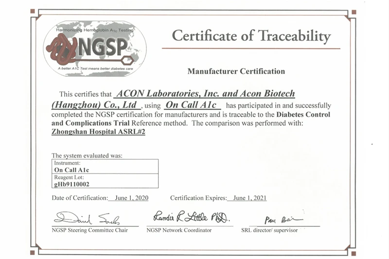 6月1日艾科糖化血红蛋白检测产品又一次通过了NGSP认证,相继2018年、2019年,艾科糖化血红蛋白检测产品已是第三次通过NGSP的严格审核。