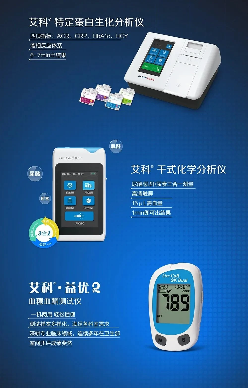 艾康生物此次受邀参加会议,艾科新品干式化学分析仪、艾科智优NB-IOT血糖测试仪、特定蛋白生化分析仪、益优2血糖血酮测试仪等产品将同台亮相。